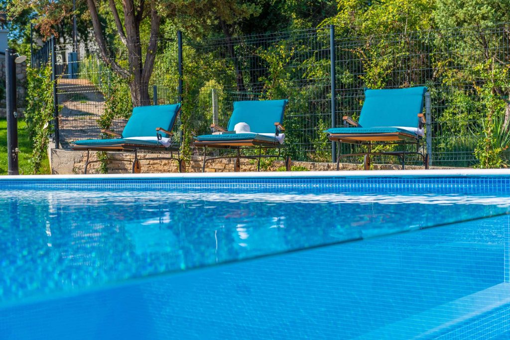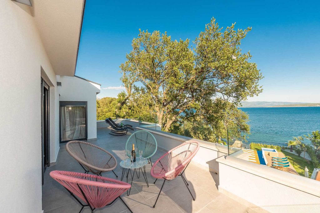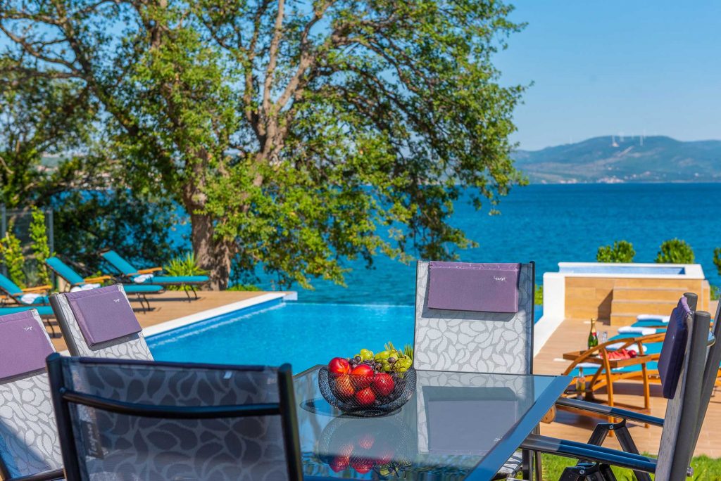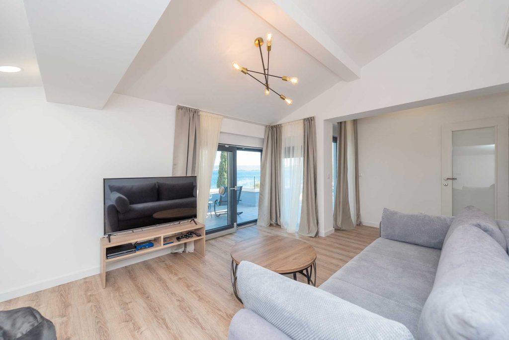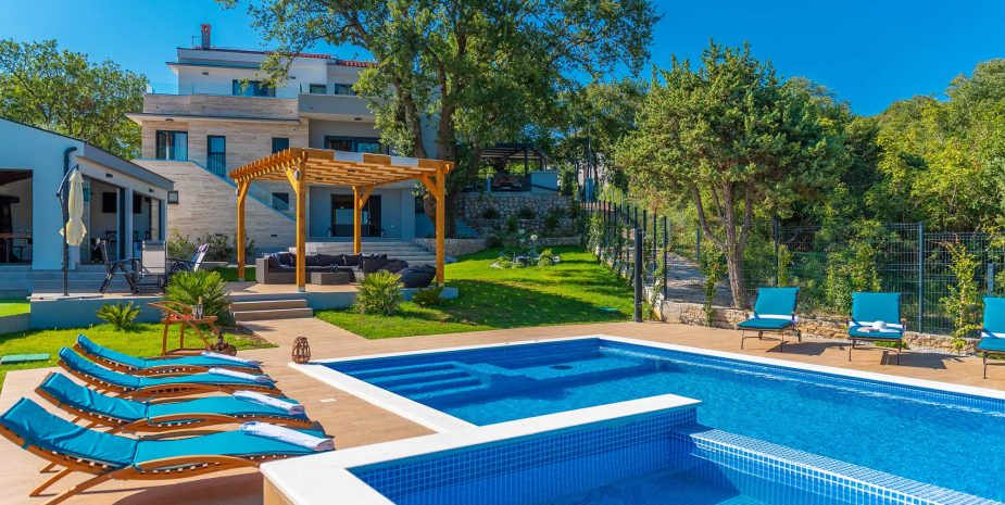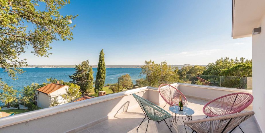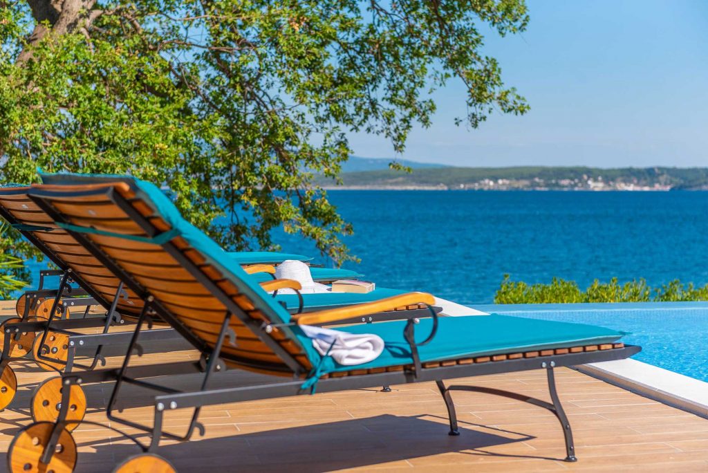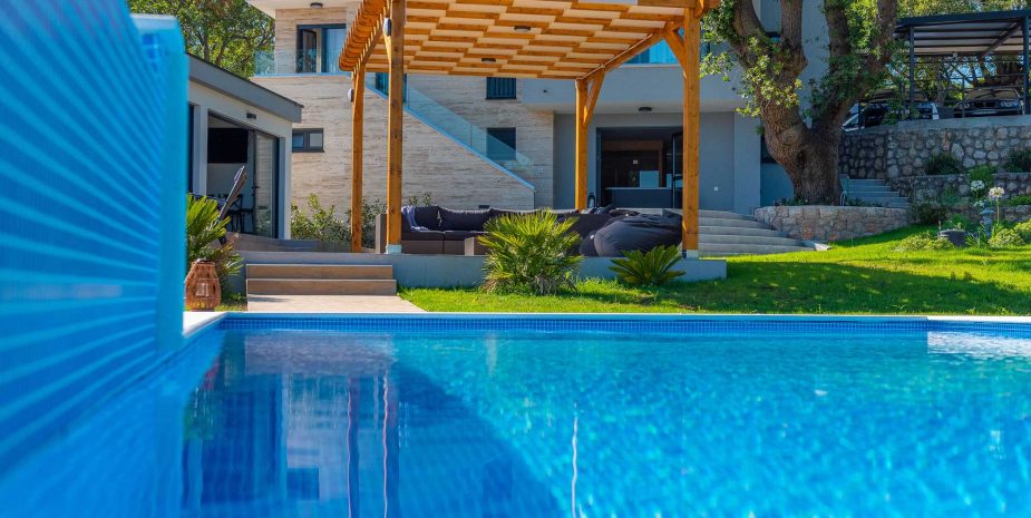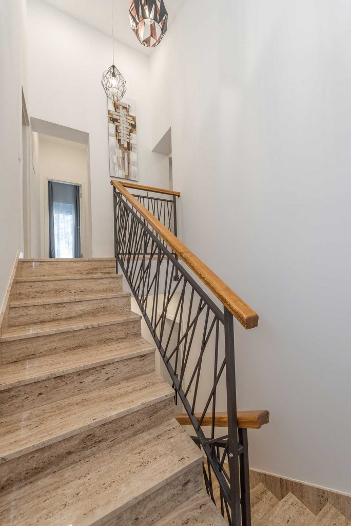 Auf der ersten Etage gibt es ein Wohnzimmer, eine Küche und zwei Schlafzimmern. Von einem geräumigen und komfortablen Wohnzimmer aus können Sie dank der offenen Raumgestaltung leicht in das Esszimmer gehen. Eine gut geplante und ausgestattete Küche befindet sich neben dem Balkon mit Blick auf die türkisfarbene Adria. In diesem luftigen und hellen Raum werden mediterrane Gerichte für Familie und Freunde schnell zubereitet, während ihr in ihren bequemen Stühlen plaudern. Jedes der Schlafzimmer ist mit Doppelbetten und eigenem Bad ausgestattet. In der zweiten Etage befinden sich die drei verbleibenden Schlafzimmer mit en-suite Badezimmern. Alles in allem können Sie wählen, ob Sie sich in einem der drei Queen-Size-Betten oder zwei Kingsize-Betten schlafen möchten. PlayStation4, Darts und Billard sollten bei der Beschreibung von Unterhaltungsinhalten erwähnt werden.