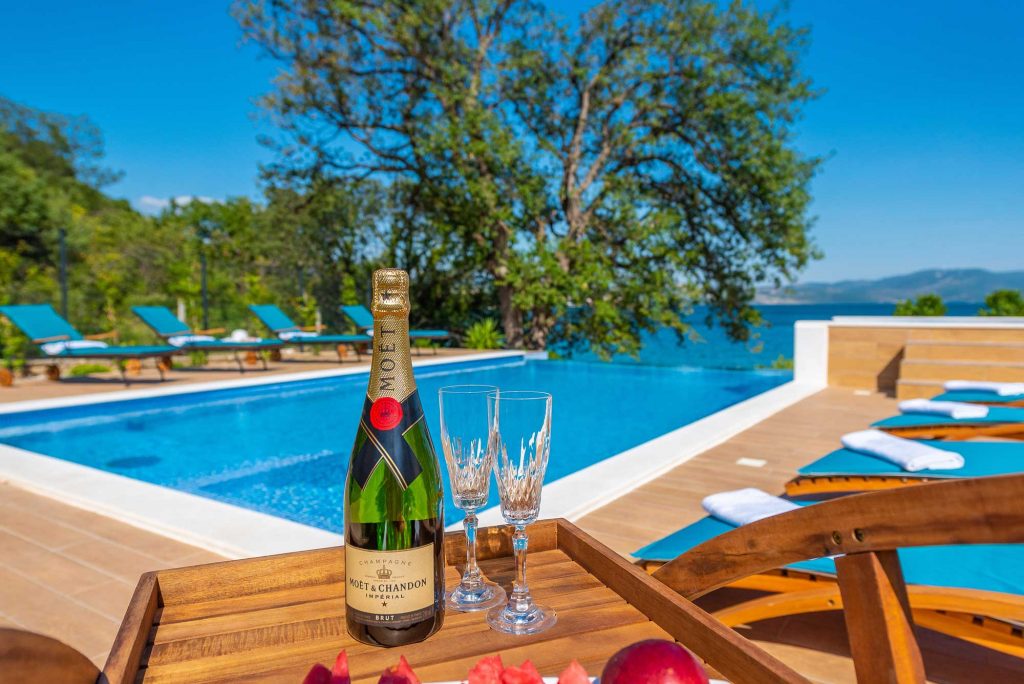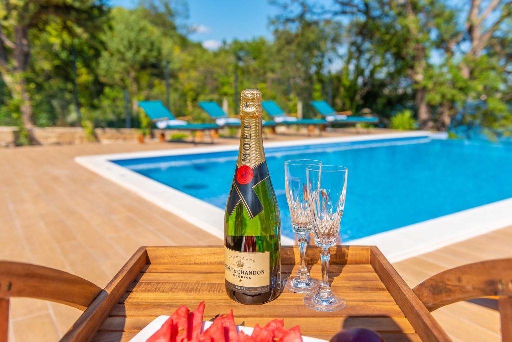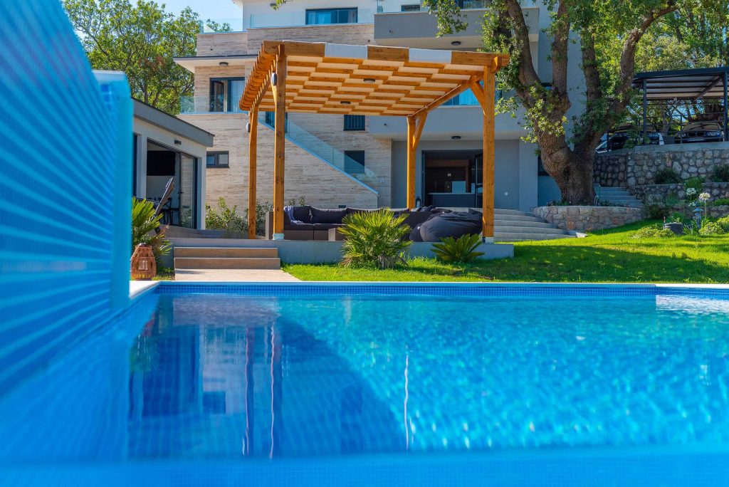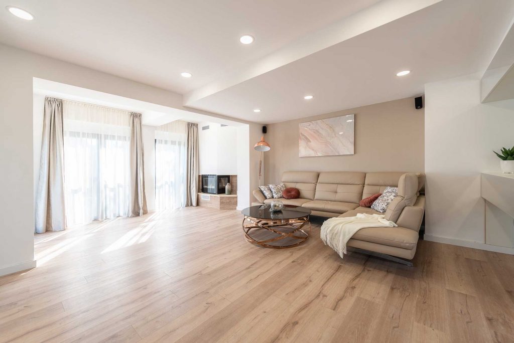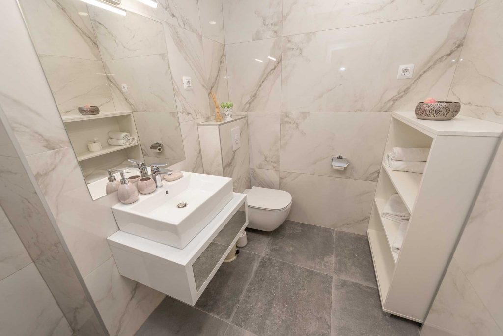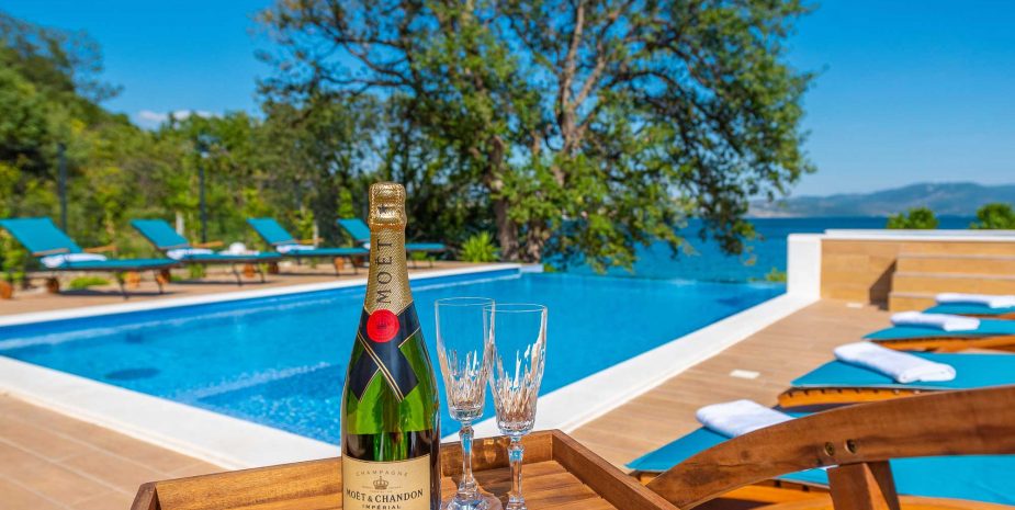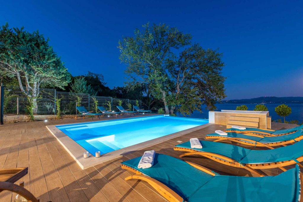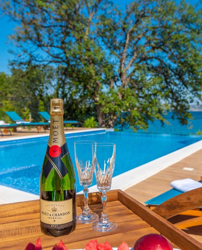 Auf der ersten Etage gibt es ein Wohnzimmer, eine Küche und zwei Schlafzimmern. Von einem geräumigen und komfortablen Wohnzimmer aus können Sie dank der offenen Raumgestaltung leicht in das Esszimmer gehen. Eine gut geplante und ausgestattete Küche befindet sich neben dem Balkon mit Blick auf die türkisfarbene Adria. In diesem luftigen und hellen Raum werden mediterrane Gerichte für Familie und Freunde schnell zubereitet, während ihr in ihren bequemen Stühlen plaudern. Jedes der Schlafzimmer ist mit Doppelbetten und eigenem Bad ausgestattet. In der zweiten Etage befinden sich die drei verbleibenden Schlafzimmer mit en-suite Badezimmern. Alles in allem können Sie wählen, ob Sie sich in einem der drei Queen-Size-Betten oder zwei Kingsize-Betten schlafen möchten. PlayStation4, Darts und Billard sollten bei der Beschreibung von Unterhaltungsinhalten erwähnt werden.