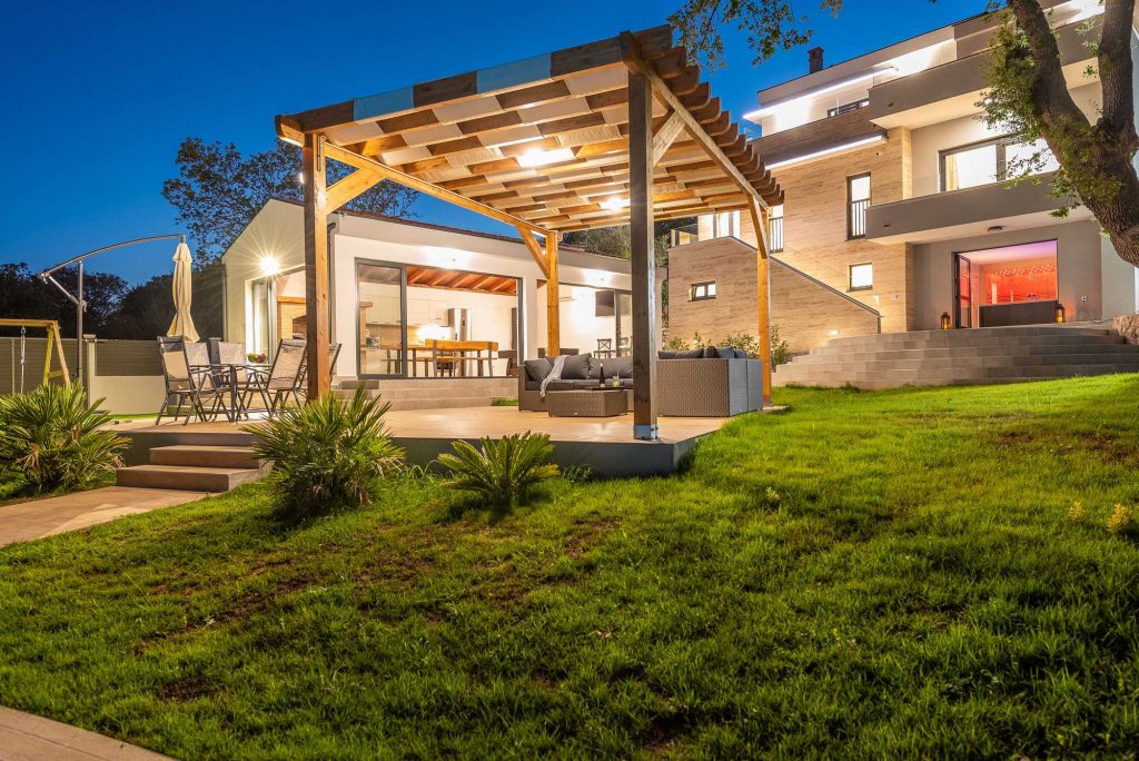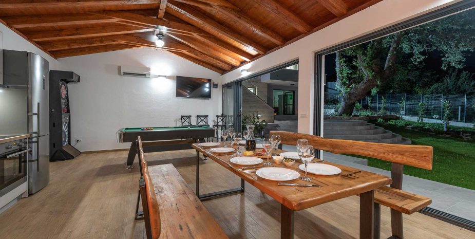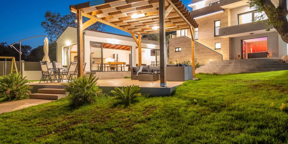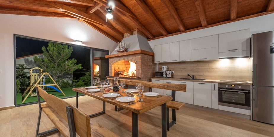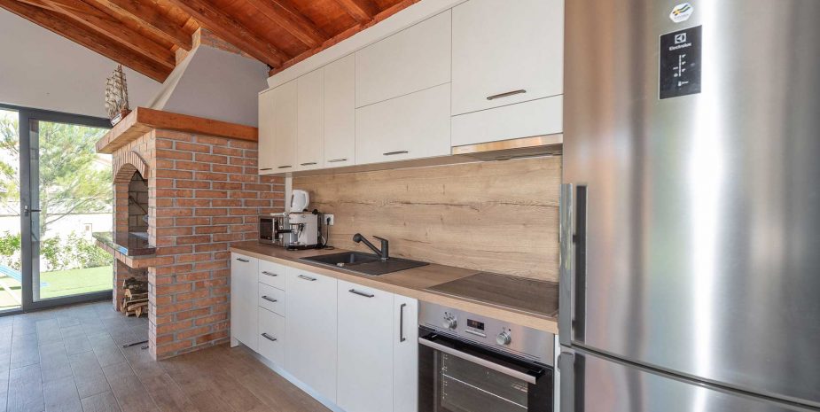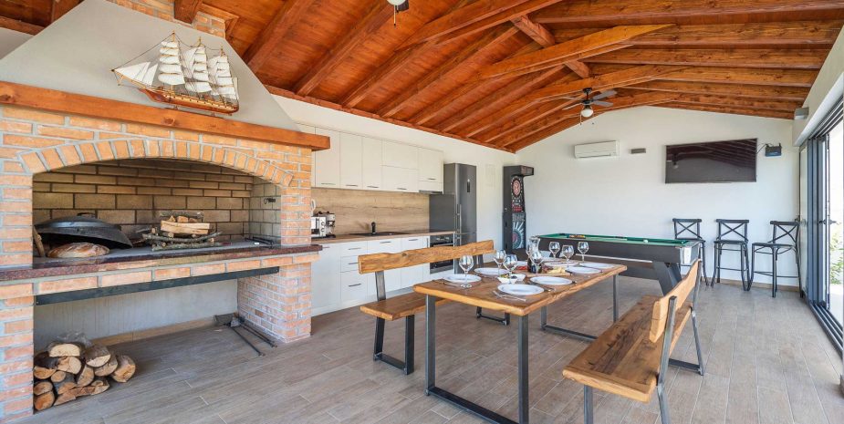 Ganz charmant und praktisch für den Sommerurlaub, im Innenhof der Villa befindet sich eine Sommerküche mit Grill, die bei Regen leicht durch Glaswände verschlossen werden kann. Wenn Sie nicht mehr im Pool schwimmen möchten, brauchen Sie nur ein paar Schritte zu machen, um ans Meer zu kommen. Die Kinder werden sicherlich begeistert sein, dass auf dem Kinderspielplatz sie zur Verfügung haben Rutsche und Schaukel benutzen können und die Möglichkeit haben, Badminton zu spielen.