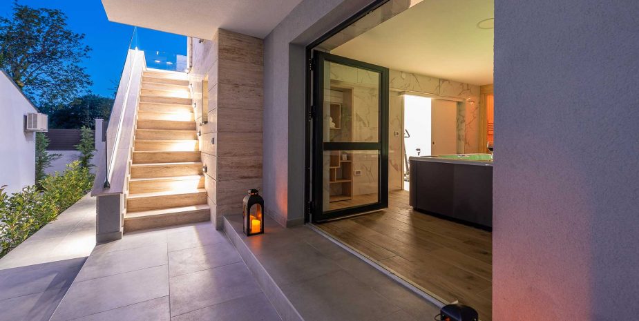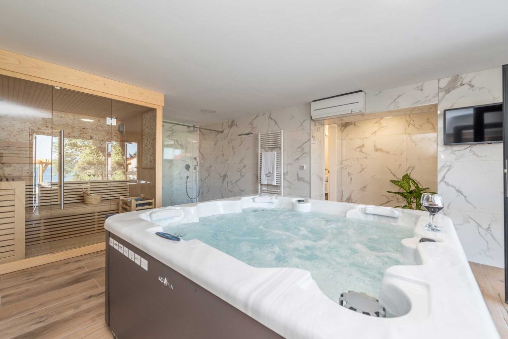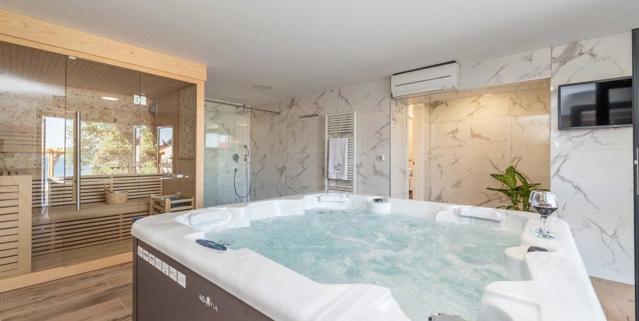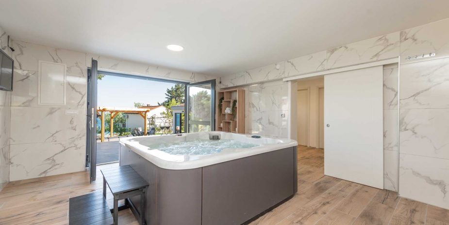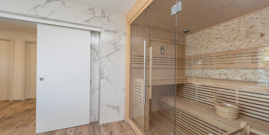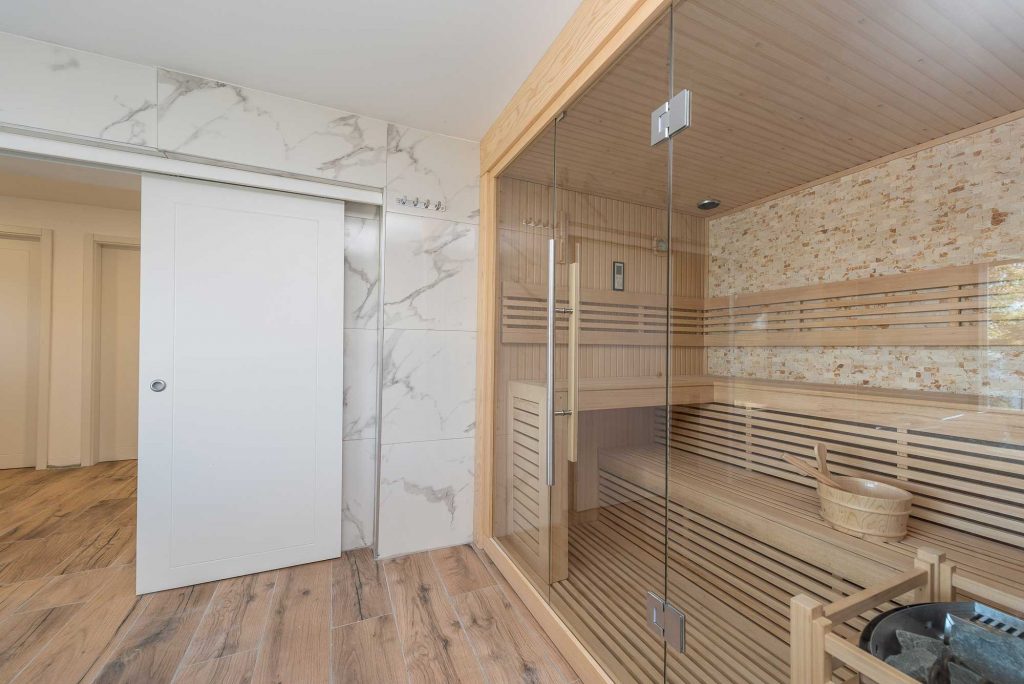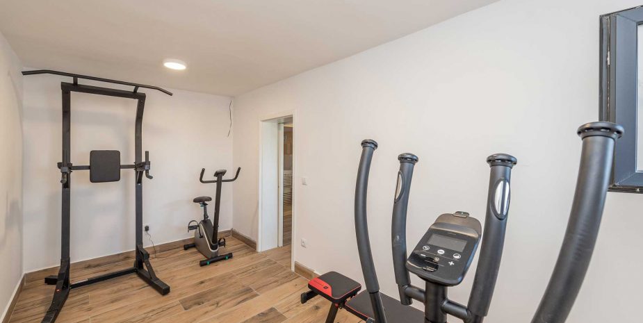 im Erdgeschoss bietet Möglichkeiten für Wellness-Fans und Sie können zwischen Sauna und Whirlpool wählen.Für alle Sportbegeisterten, die auch während ihres Urlaubs nicht von einem Fitnessstudio fernbleiben möchten, stellten die Besitzer der Villa im selben Bereich der Villa mehrere Trainingsgeräte zur Verfügung.Schon damit erfüllt die Villa die Anforderungen verschiedener Generationen.